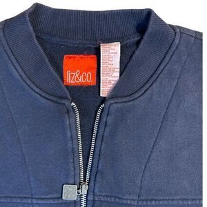 Liz & Co jersey bomber jacket with quilted silk sleeves. Nice quality and lightweight. In excellent condition.