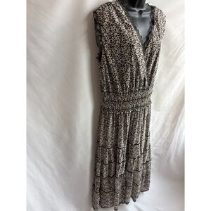 Liz Jordan Midi Dress Size 18 Tiered Animal Print Leopard Cheetah 90s Romantic