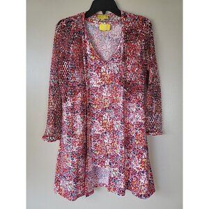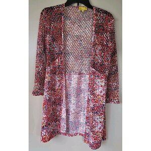 Liz Lange 2 Piec Blouse SzL Bubble Gum Confetti Camisole & Duster Croquet Sleeve