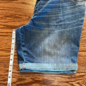 Liz Lange MATERNITY Bermuda over the belly STRETCH denim shorts gold leg cuff L