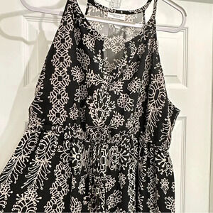 Liz Lange Maternity Black White Maxi Sleeveless Drawstring Waistband Dress Sz M