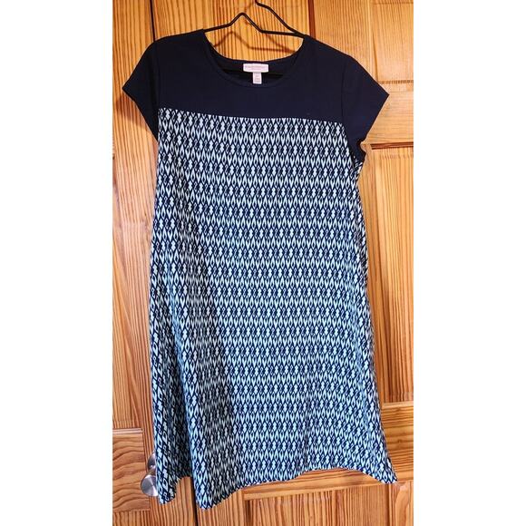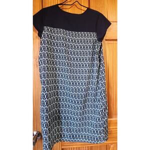 Liz Lange Maternity Dress Womens Size S Navy Blue Aqua Geometric Shift Dress