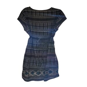 Liz Lange Maternity gray and blue patterned tunic top that ties in the back.