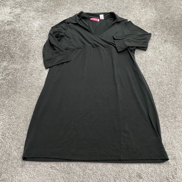 Liz Lange Maternity Midi Dress Womens Large Black Stretch Long Sleeve V-Neck