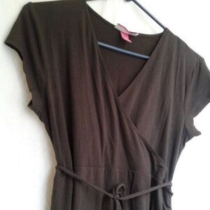 Liz Lange Maternity Surplice Fit & Flare Dress Size S Brown Soft Jersey Stretch