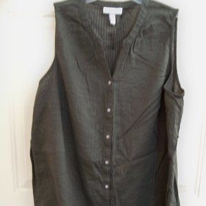 Cute Army Green color top Sleeveless design V neck and button front Flowing to keep you cool