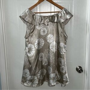 Liz Lange Maternity XL Floral Blouse – Champagne Beige Ruffle Top