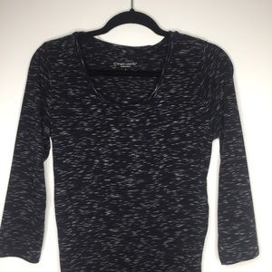 Liz Lange Maternity women’s size small, black and white heather ruch midi dress. Dress has ruch down the sides and 3/4 sleeves. This gently used dress is perfect for your changing body. Approximate flat measurements are armpit to armpit 18” and shoulder to hem 44”. GG-10 box 6