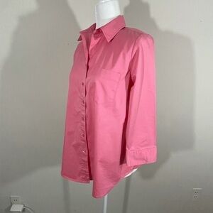 Very nice quality button down shirt style. The top is a pretty shade of coral. Crisp fabric. Worn very little. 3/4 sleeves. Very cute on. No visible flaws. Any questions please ask. Will answer questions as soon as possible. R 2