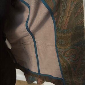 Stylish paisley blazer. Features a mix of earthy tones. Perfect for a chic look.