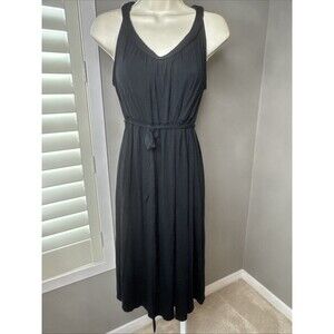 Liz Lange black maternity dress size large sleeveless V Neck Belted Braided Neck