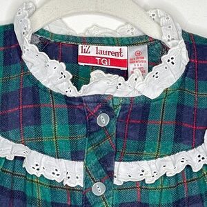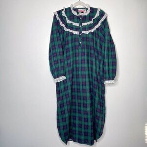 Liz Laurent Vintage Plaid Flannel Night Gown White Ruffles