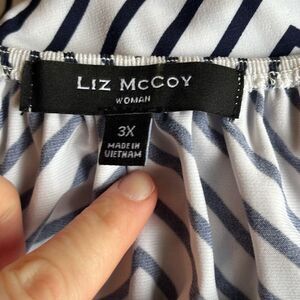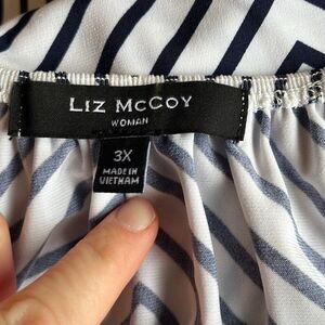 Liz McCoy‎ 3X blue and white chevron print blouse - 2909