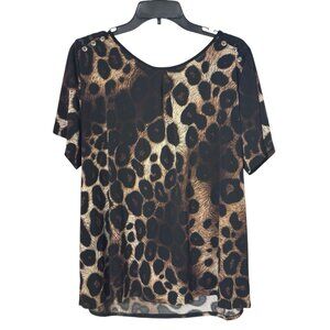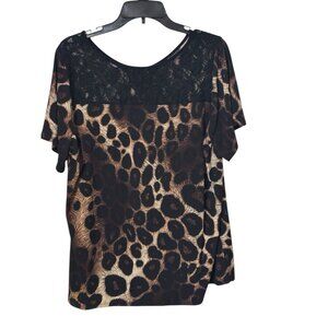 Liz McCoy Women’s 2X Leopard Print Lace Shoulder Top