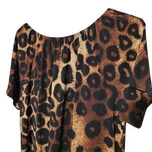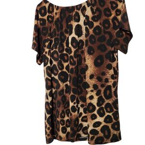 Liz Mccoy Blouse Size 1X Animal Print Tie Front Short Sleeves Stretch