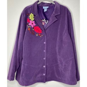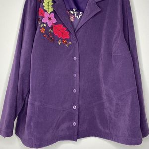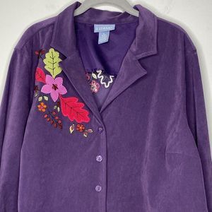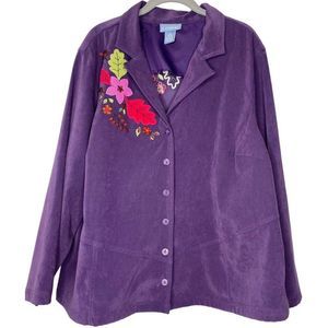 Liz & Me Floral Embroidered Jacket Plus Sz 1X (18/20) Vtg Lightweight Fall Art to Wear Colorful