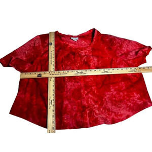Liz & Me -Red Sheer Floral Burnout Blouse Women’s Short Sleeve Lightweight Top