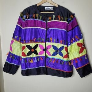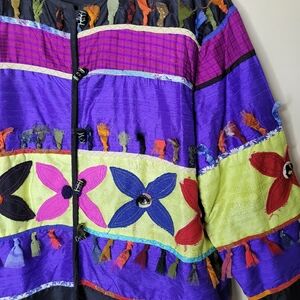 Liz & Me Silk Blend Jacket 2X Colorful Statement Art to Wear Embroidered Gallery