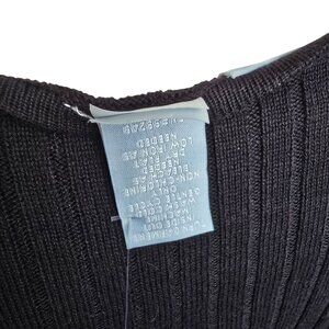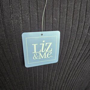 This Liz & Me women's black sweater with cream white privacy panel combines elegance with comfort. The scoop neck and long sleeves offer a timeless look, suitable for professional settings. The black hue and ribbed cable knit texture add sophistication to any outfit. Designed for versatility, this sweater can be paired with various bottoms for an effortless ensemble.