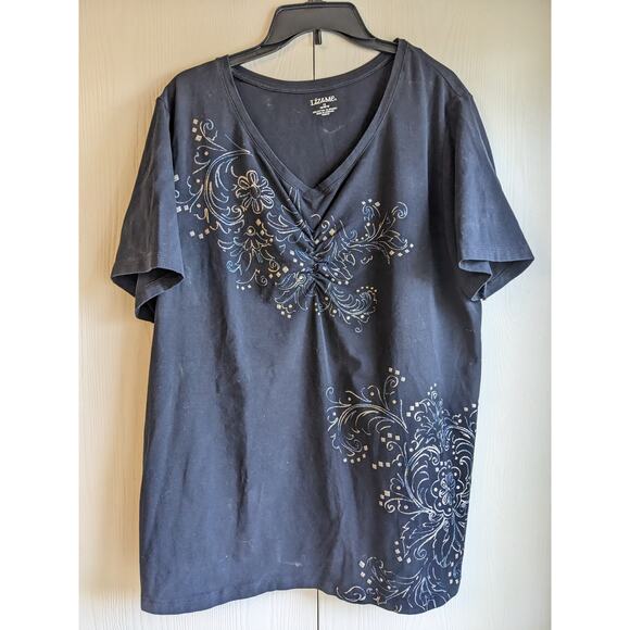 Liz & Me Women's Black Short Sleeve V-neck Printed T-shirt Top Size 1X