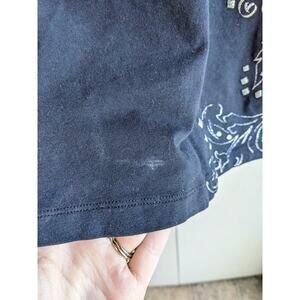 This Liz & Me Women's T-shirt combines comfort with a touch of style. In a size 1X, this black top features a flattering V-neck and short sleeves, making it a versatile piece for various occasions. The printed design adds a subtle yet eye-catching detail. Made from a soft blend of cotton and spandex, it offers both breathability and a bit of stretch for a comfortable fit. Perfect for casual wear or layering, this T-shirt is a stylish and practical addition to your wardrobe.