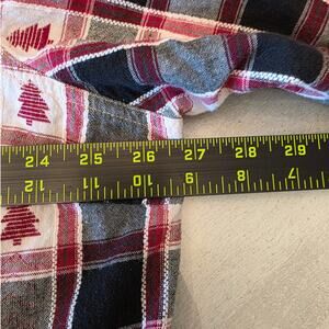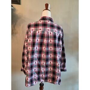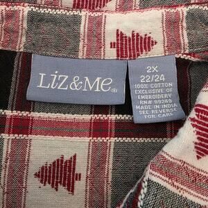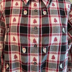 Liz & Me Women's Christmas Plaid Blouse. Embroidered Santa's. Size 2X. In Excellent Preowned Condition. Smoke Free Home.