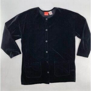 Liz & Me Women’s Vintage Velour Black Button Up Cardigan With Pockets Size Small