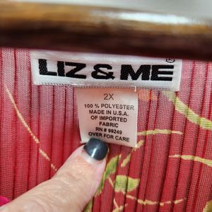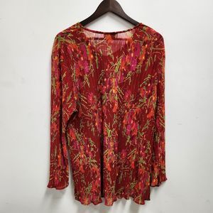 Liz & Me X Catherines Long Sleeve Accordian Pleated Blouse 2X Multicolor Floral