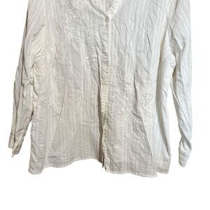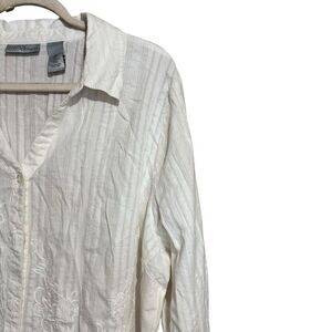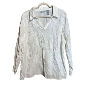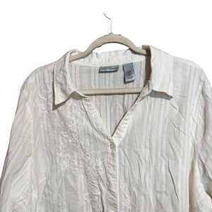 Liz & Me for Catherines Top 2X 22 24W Ivory Button Up Floral Embroidered Blouse