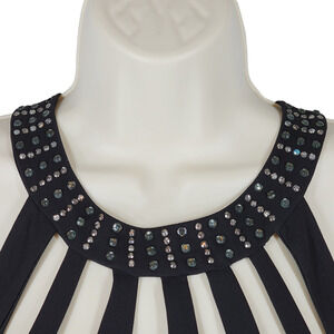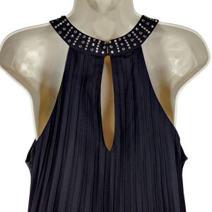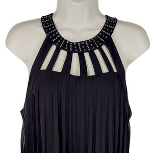 Liz Minelli Accordian Pleated Mini Dress sz M Women Black Embellished Halter