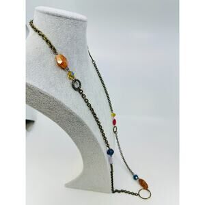 Liz Palacios Necklace Colorful Stone Crystal Stations Chain Link Bronze Tone 42"