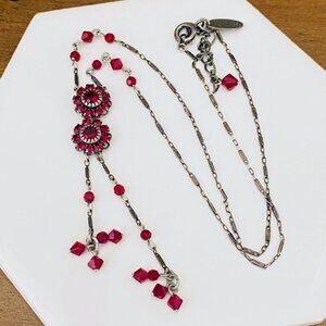 Liz Palacios SF Red Crystal Flower Necklace Boho Romantic Signed Vintage