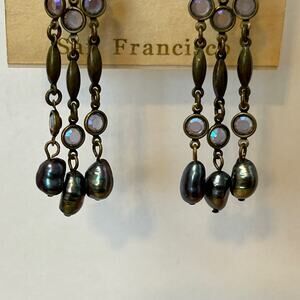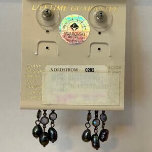 Liz Palacios Swarovski Crystal Freshwater Pearls Chandelier Post Earrings