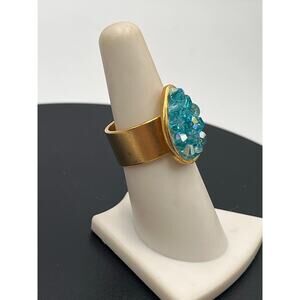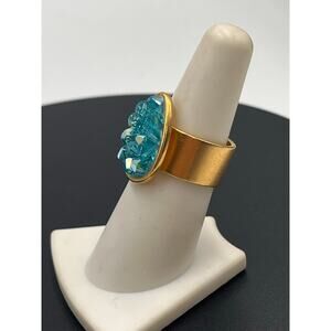Liz Palacios Teardrop Blue AB Swarovski Crystal Gold Plated Wide Band Ring Sz 7