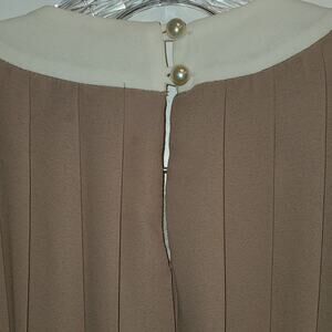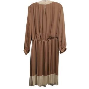 Liz Roberts Women's Tan & Cream Pleaded Elastic Waist Midi Retro Dress Size 14