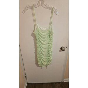 Liz & Sara Ruched Mini Dress Juniors XL Green Lined Mesh Summer Party Angelcore
