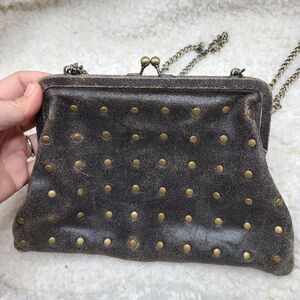 Liz Soto Distressed Studded Genuine Leather Kisslock Purse