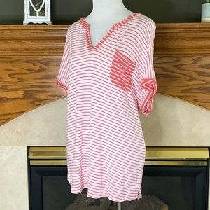 Liz Sport V-Neck Short Sleeve Striped Top Sz. XL