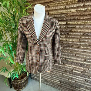 Liz Sport by Liz Claiborne Houndstooth Check Vintage 80s Fitted Blazer Size 2 P