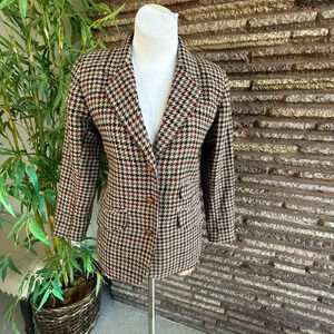 Women’s vintage houndstooth check fitted equestrian style blazer