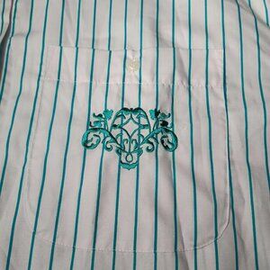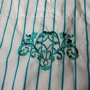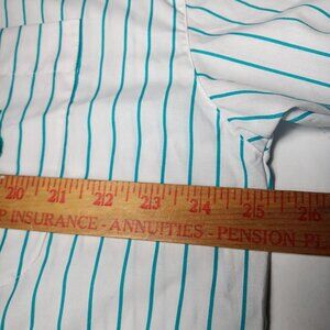 Liz Thomas II Blouse Plus Size 40 White Teal Stripe Short Vintage 80s 90s NOS