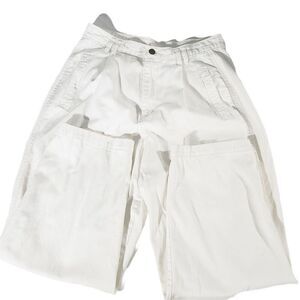 Liz Wear White 100% Cotton Pleated Front 3 Pocket Relaxed Denim Jeans Size 14
