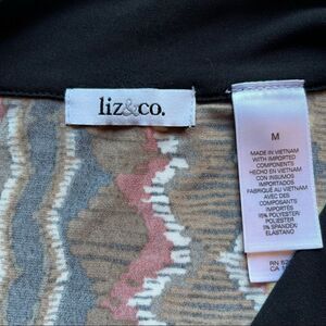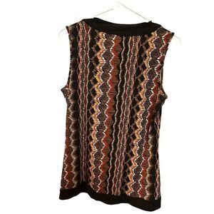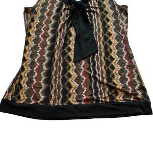 Liz and Co Tank Blouse black/brown and red V neck with tie Medium Dressy