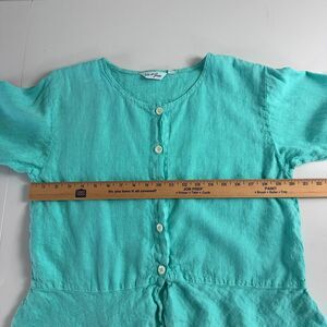 Liz and Jane Women's Turquoise Blue 100% Linen Button Front Top Size M