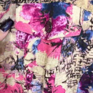 Stylish floral button-up jacket with vibrant pink and blue hues. Perfect for a chic and casual look.linen Cotton blend EUC Women’s plus size 3X