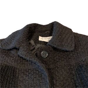 Liz Claiborne Black Wool Blend Pea Coat Sz L. Textured. Large buttons. Warm! Approximate measurements armpit to armpit 21 inches length 38 inches. Great preowned condition. Some light pilling