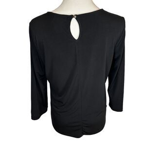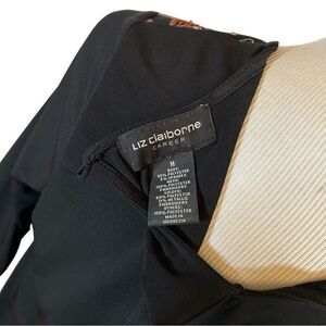 Liz Claiborne Career Black Orange Floral Long Sleeve Crew Neck Top Blouse Keyhole Back