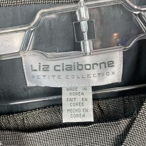 Classic and stylish gray and black Heathered dress jacket and cropped slacks by Liz Claiborne in excellent preowned condition. The jacket measures 20 inches armpit to armpit laying flat and 29 inches in length from shoulder to hem. The pants measure 14 inches at the waist laying flat and have a 25 inch inseam.