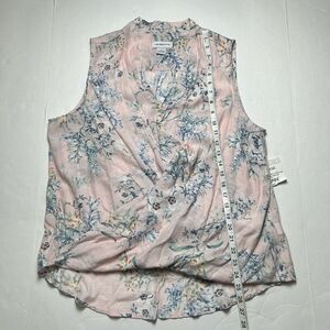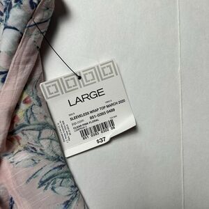 Liz Claiborne Top Womens L Pink Floral sleeveless Wrap Front Blouse Cottage Coastal new with tags. Light weight.