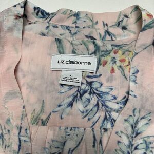 Liz Claiborne Top Womens L Pink Floral Wrap Front Blouse Cottage Coastal